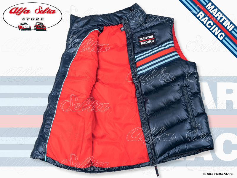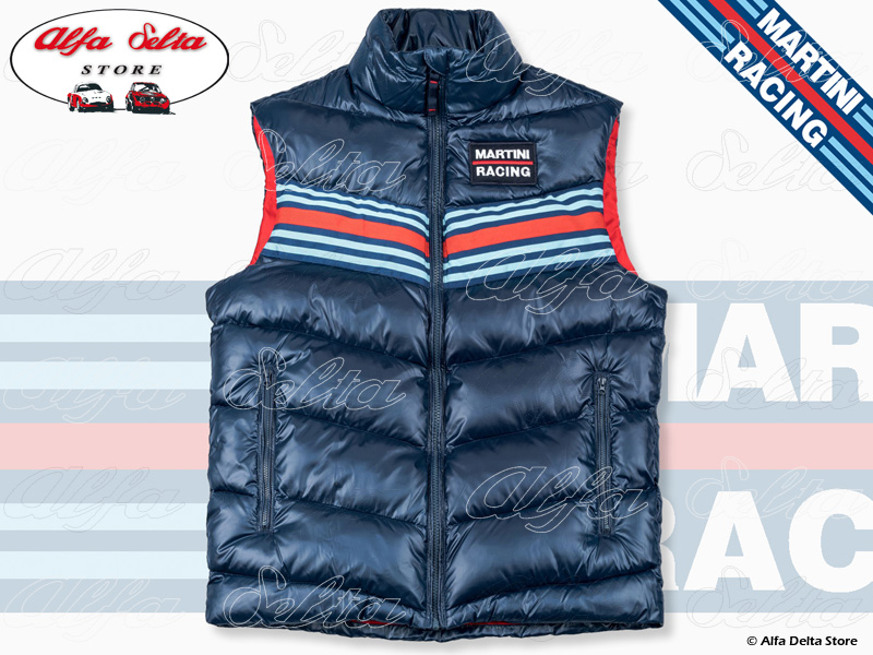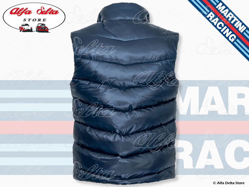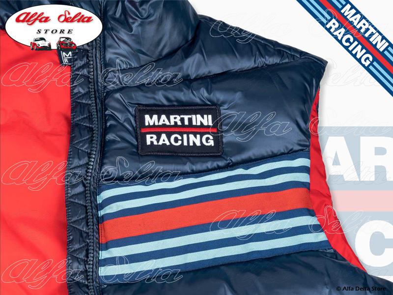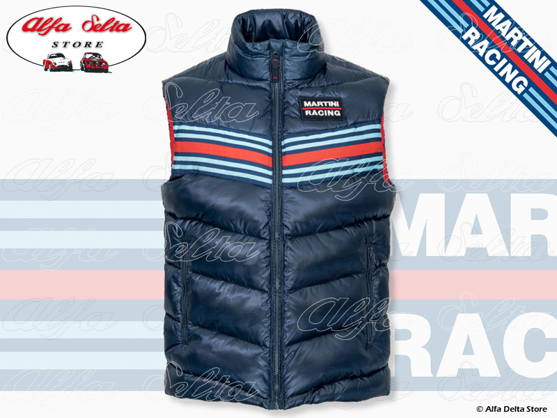 Classic MARTINI RACING Sportline gilet from the early 1980s, modern interpretation in puffer style, with generous padding and water-repellent outer material. The gilet was part of the Martini Sportline collection and was worn by the Martini teams in the World Rally Championship and the World Sports Car Championship.