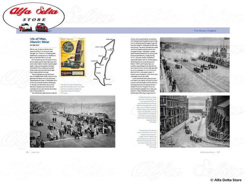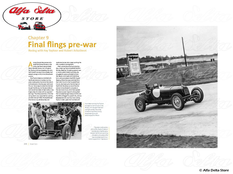 This Alfa Romeo Monza book is about a specific car 2211130 that was built in 1933. It was raced that year by the Hon Brian Lewis and won the arduous Mannin Moar race on the Isle of Man. The car continued to be raced until the war by John Cobb (1934), Luis Fontes (1935), Anthony Powys-Lybbe (1936–37) and Fay Taylour (1938), at venues as diverse as Vila Real (Portugal) and Phoenix Park (Ireland). Post-war, it passed through several significant collectors to arrive at its status today as one of the more important surviving Monzas, and a car with so much charisma and historic interest that it is a most worthy addition to the acclaimed Great Cars series.