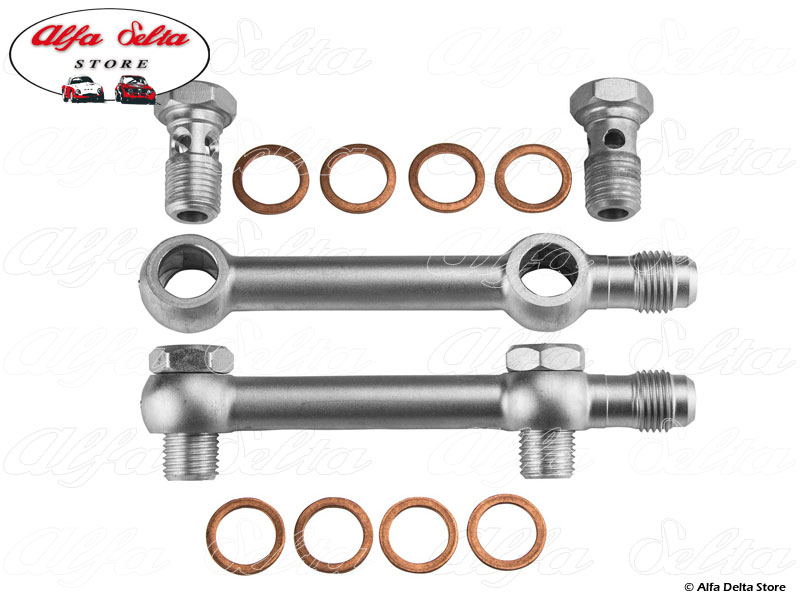 La fornitura comprende: 2 raccordi a ponte con attacco D-06, 4 bulloni banjo da 1/4 NPT, 8 anelli di tenuta.