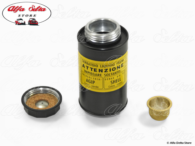 Brake fluid container complete with filter and cap